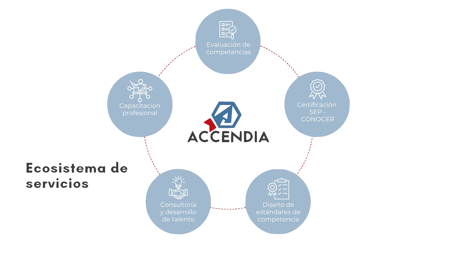 En Accendia, acompañamos a personas y organizaciones a transformar su experiencia en valor, a través de procesos de evaluación, capacitación y certificación de competencias laborales con reconocimiento oficial ante el CONOCER.
